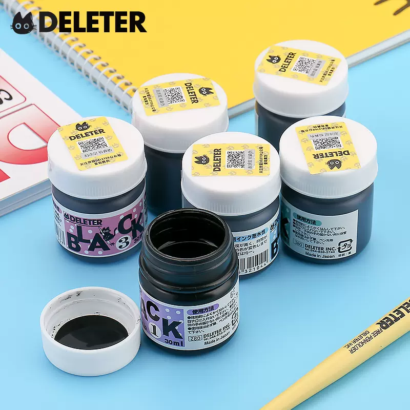 日本deleter灵猫黑色漫画墨水1 2 3 4 5 6号黑墨汁 修正白